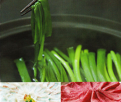 | 1:水から昆布でだしをとっておく 2:味一ねぎは、根の部分をとってそれ以外の部分を2〜3等分しておく 3:だし汁を鍋にかけ煮立ったら、こねぎ、ハモ、牛肉をしゃぶしゃぶする ※肉から脂が出るので、肉を入れるのはハモを食べ終わったあと ※味一ねぎは、シャキシャキ感が残るように湯に長く浸けすぎない。 |