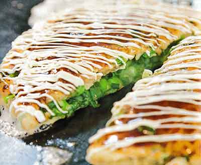 | 1:お好み焼きの素、卵、水を混ぜる 2:1を熱したフライパンに薄く流し入れる。 3:2の上に好みの大きさに切った味一ねぎと豚肉をのせる。 4:1をもう一度かけ、裏返して焼いたら出来上がり。ソースやマヨネーズをかけてください。 |